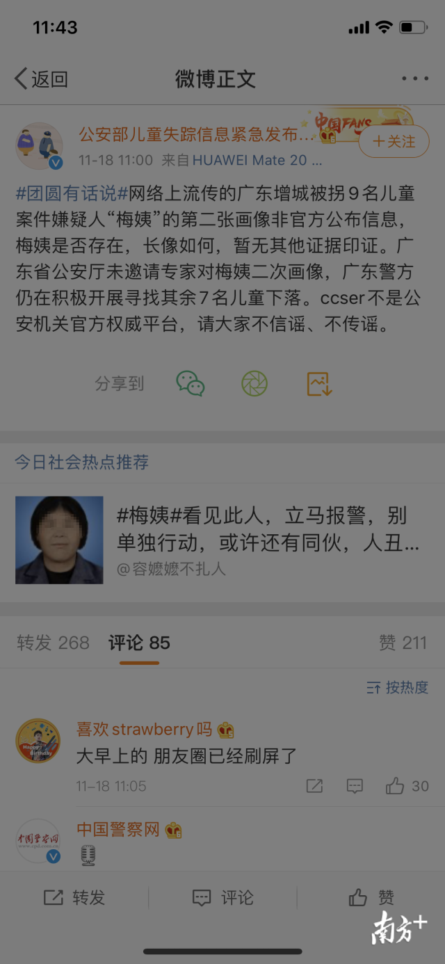 關于“梅姨”在深圳的情況,深圳警方人士11月18日12時向南方+表示,“市局目前沒有收到任何這方面的警情?!?/p>