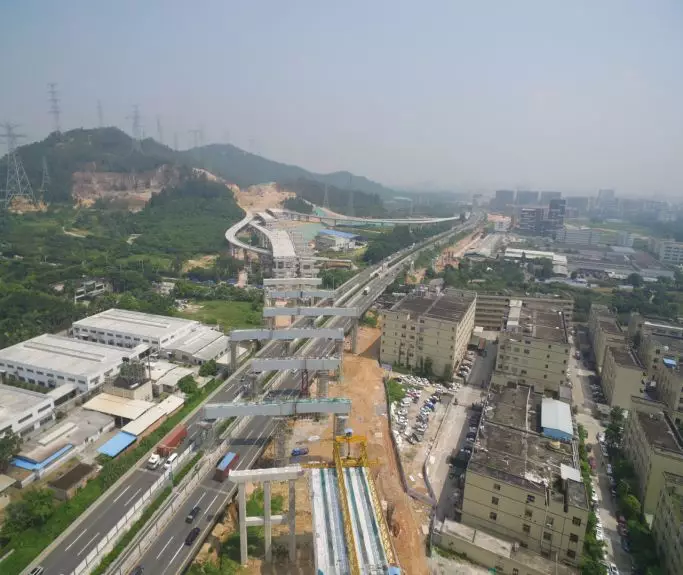 外環(huán)高速一期工程路線長(zhǎng)51km,其中沙井至觀瀾段35.67km、龍城至坪地段15.06km。