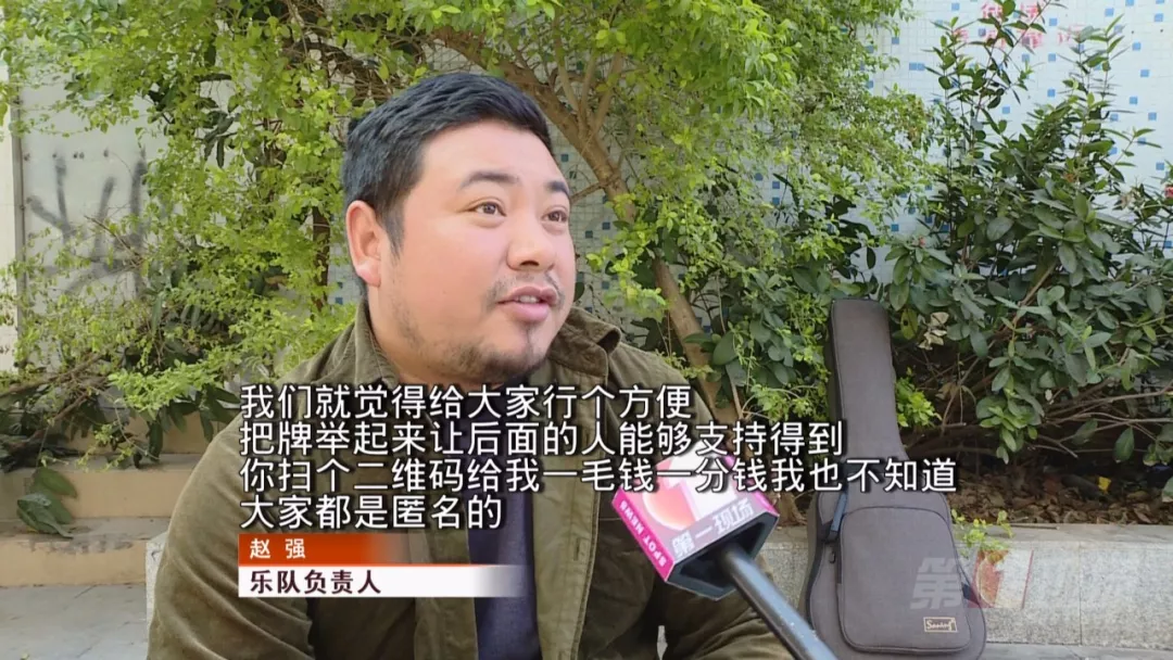 上周末,恰逢蓮花山簕杜鵑展,廣場(chǎng)人流量猛增,觀看樂隊(duì)演出的市民圍了好幾層,為了方便后排市民打賞,一名銀河樂隊(duì)的成員就把原本放在地上的二維碼拿在手上,在觀眾前繞了一圈,沒有強(qiáng)制索要打賞的意思。
