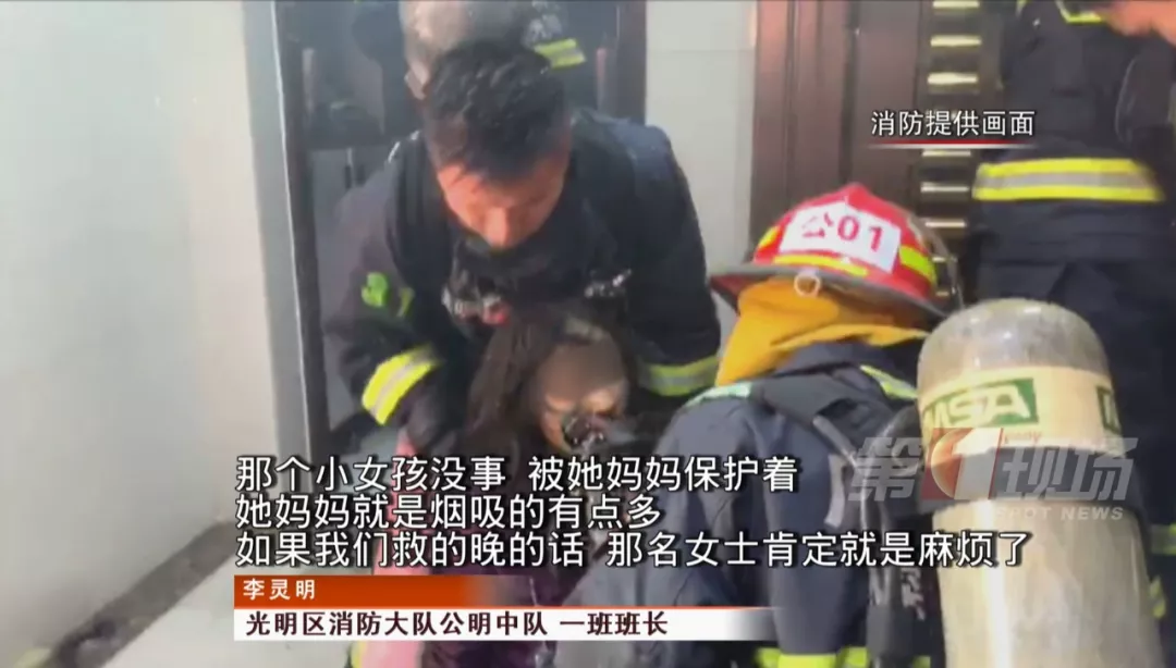 9點(diǎn)40分左右,消防隊(duì)員破門而入,成功將這對(duì)母女救出。據(jù)參與救援的消防指戰(zhàn)員李靈明回憶,當(dāng)時(shí)他們沖進(jìn)濃煙滾滾的屋內(nèi)時(shí),母親正用手拼命護(hù)住年僅4歲女兒的口鼻,而自己則處于完全無保護(hù)的危險(xiǎn)狀態(tài)。