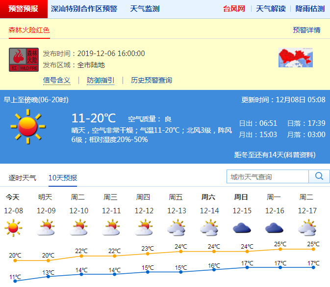 見圳客戶端·深圳新聞網(wǎng)2019年12月8日訊 12月6日,深圳市氣象臺(tái)在全市陸地發(fā)布森林火險(xiǎn)紅色預(yù)警,這是今年首個(gè)森林火險(xiǎn)紅色預(yù)警。