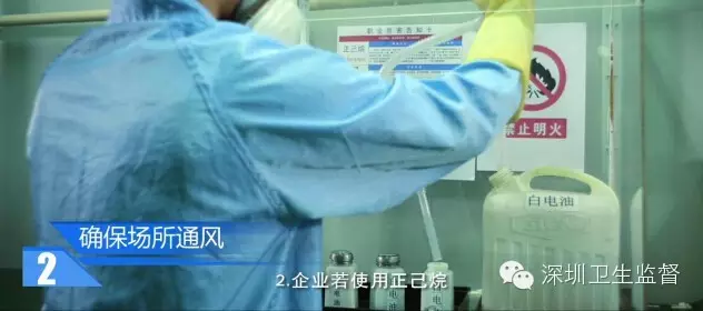 勞動(dòng)者應(yīng)加強(qiáng)防范意識,戴好防護(hù)口罩穿防護(hù)服,嚴(yán)禁用正己烷洗手。