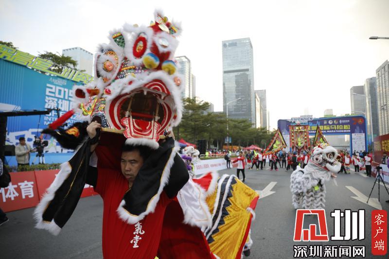 起跑前進(jìn)行了舞獅表演。