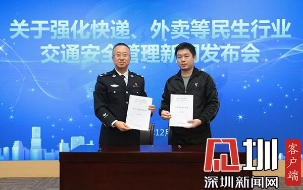 深圳市交警局副局長馮新毅與相關(guān)企業(yè)代表簽訂承諾書。