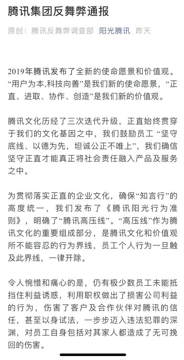 以下為《騰訊集團(tuán)反舞弊通報(bào)》中的典型案例:
