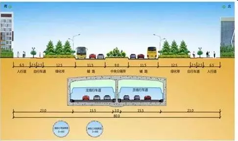 桂廟路將新建下沉隧道,建成地下快速路和地面主干道于一體的雙層通道。圖為雙層通道示意圖
