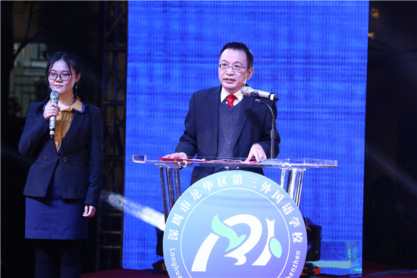 在晚會正式開始之前,聶細剛校長在致辭中提到,深圳市龍華區(qū)第三外國語學校是一所致力于植根中國、面向世界的外國語品牌學校,培養(yǎng)具有中國精神、世界情懷的國際公民。同時,在借力于孔子學院、立足打造書香校園、弘揚中華民族優(yōu)秀傳統(tǒng)文化基礎(chǔ)上,借力于北京外國語大學、北京師范大學,在全力推進英語雙師云課堂。同時,開設(shè)了俄語、法語、韓語等小語種選修課,未來還將開設(shè)日語、德語、西班牙語等小語種,凸顯外國語特色品牌。學校成為全國美育名校聯(lián)盟學校,北京師范大學項目實驗學校,北京外國語大學課題實驗基地,泰國曼松德大學孔子學院漢語教學交流基地等;吸引了一大批來自清華大學、北京大學、北京師范大學、愛丁堡大學、曼徹斯特大學、西班牙武康大學等國內(nèi)外知名高校的優(yōu)秀人才加盟。學生舞蹈團首次登上2020年廣東省少兒春晚的舞臺。在第五屆深圳教育改革創(chuàng)新大獎評比活動中,榮獲“2019年度家校共育典范學?!?。