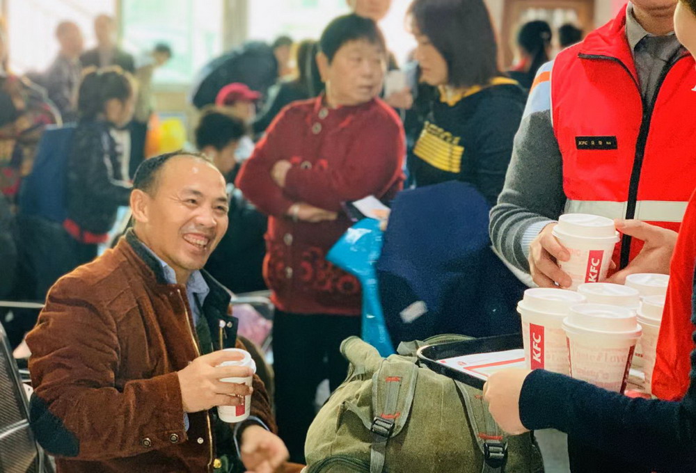 春節(jié)臨近,深圳福永汽車站迎來旅客返鄉(xiāng)的高峰。1月12日,深圳肯德基聯(lián)合福永義工聯(lián)為返鄉(xiāng)的建設(shè)者贈(zèng)送1000杯愛心熱飲,將溫暖與愛帶回家。據(jù)悉,這是深圳肯德基第三年參與春運(yùn)愛心贈(zèng)飲活動(dòng)。