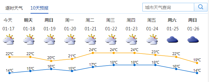 最低氣溫降至12-13℃,伴有小雨和霧;其余時(shí)段多云為主,可見陽光。