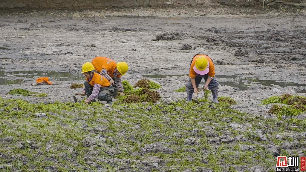 東、西、北湖水生植物人工種植,逾百人隊伍連續(xù)奮戰(zhàn)十天,完成三個湖的種植目標(biāo)。