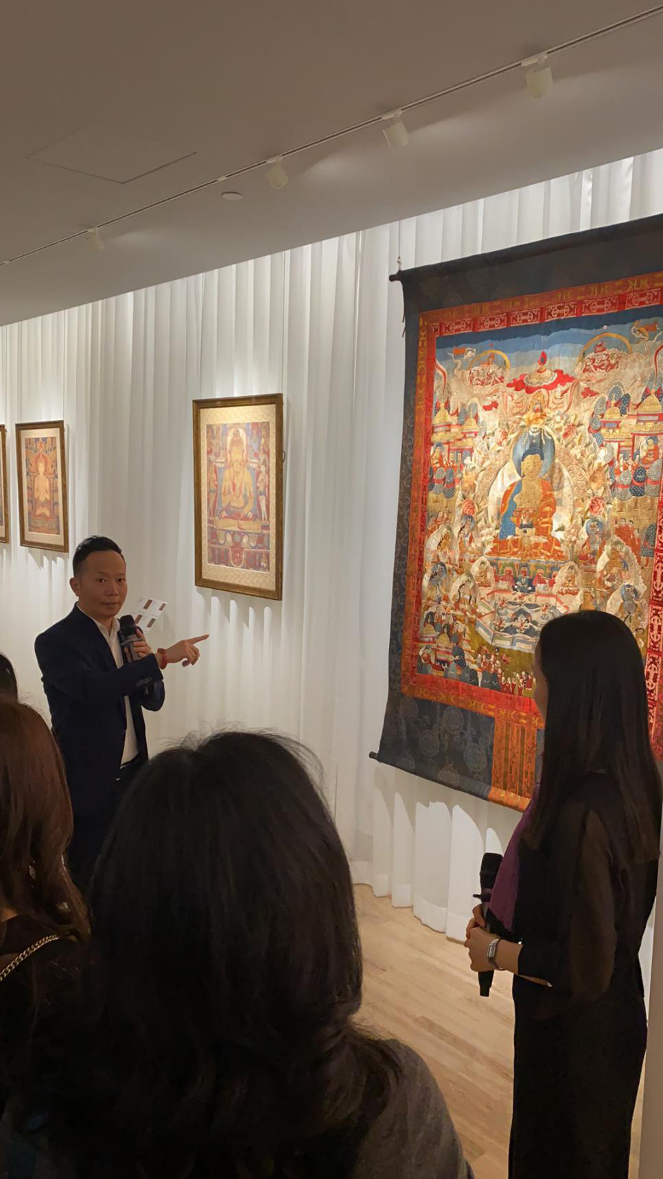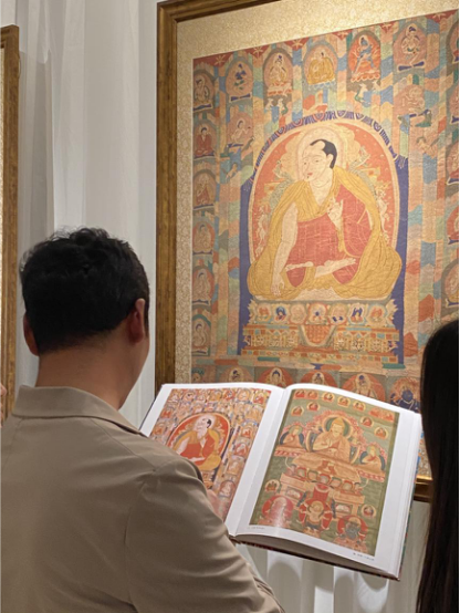 為了讓觀眾更好地了解本次展出唐卡的工藝美及其背后所蘊含的人文價值,桂心堂主人邀請了布達拉宮唐卡專家——次仁占堆老師、曾長期生活于蘇州的資深唐卡愛好者葉小龍,一同在1月4日的下午,給觀眾們帶來了一場深入淺出的導覽活動。
