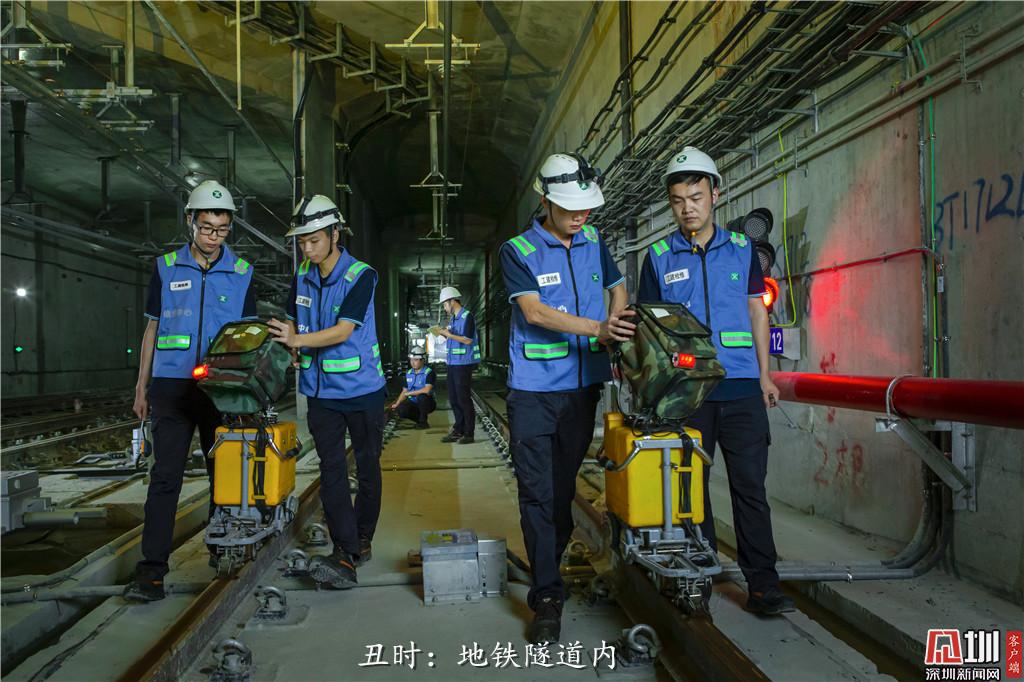 凌晨2點,深圳地鐵維修中心的探傷工正在進行軌道探傷作業(yè),確保白天地鐵能正常運行。