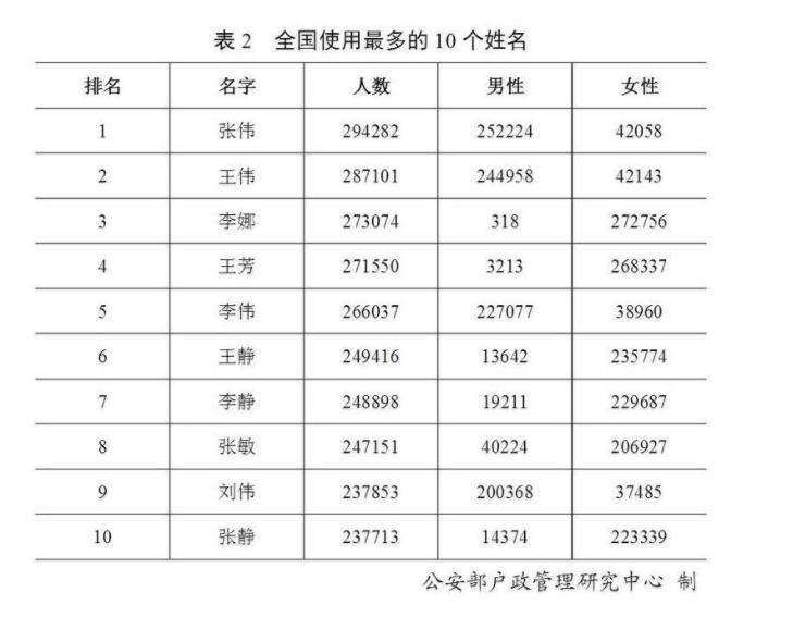 全國(guó)戶籍人口中,有30萬個(gè)“張偉”、27萬個(gè)“李娜”…