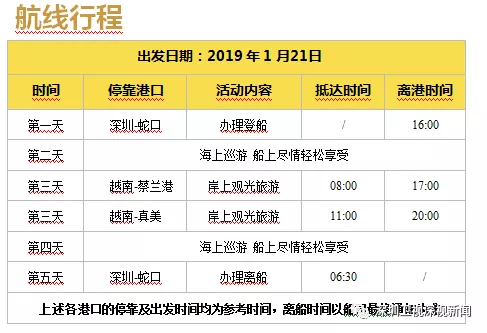 據(jù)悉,歌詩達(dá)威尼斯號郵輪1月21日16時從蛇口郵輪母港出發(fā),為6天5晚的航程,航行路線為:深圳-下龍灣(蔡蘭港)-峴港(真美)-深圳。