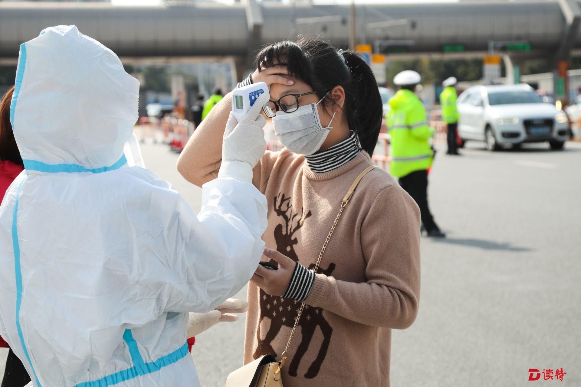 返深市民在交通檢疫點配合測體溫