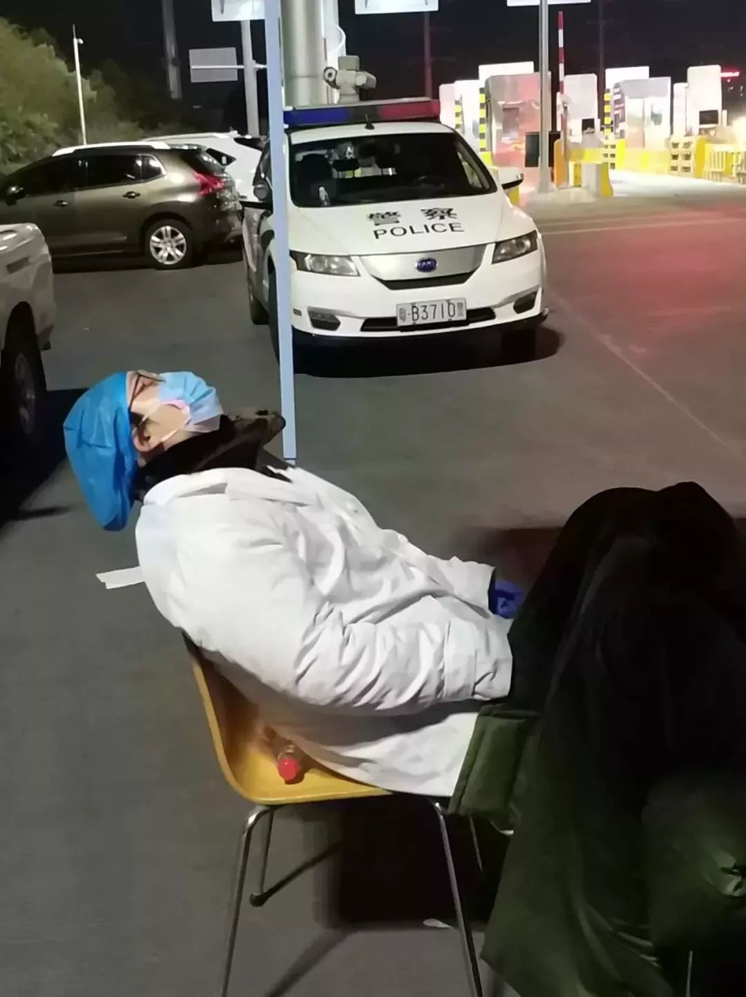 “我們采取輪班制,因高速路口車流量大,除了吃飯喝水,其余時(shí)間都在給返深人員檢測(cè)體溫。”照片拍攝者陳偉標(biāo)說(shuō)。他也是慢性病防治中心的醫(yī)生,同是這次檢疫一線的醫(yī)務(wù)人員,看到在寒夜中連續(xù)站立工作近7個(gè)小時(shí)的南月麗,疲憊地仰靠在椅子上休息,心中的觸動(dòng)讓他留下了這個(gè)珍貴瞬間,也成了防控疫情一線醫(yī)務(wù)人員的真實(shí)寫照。