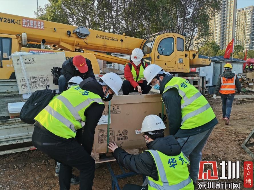 1月31日下午,華為網(wǎng)絡(luò)、視頻會(huì)議等設(shè)備緊急運(yùn)輸進(jìn)場,準(zhǔn)備施工調(diào)測 。 (華為供圖)