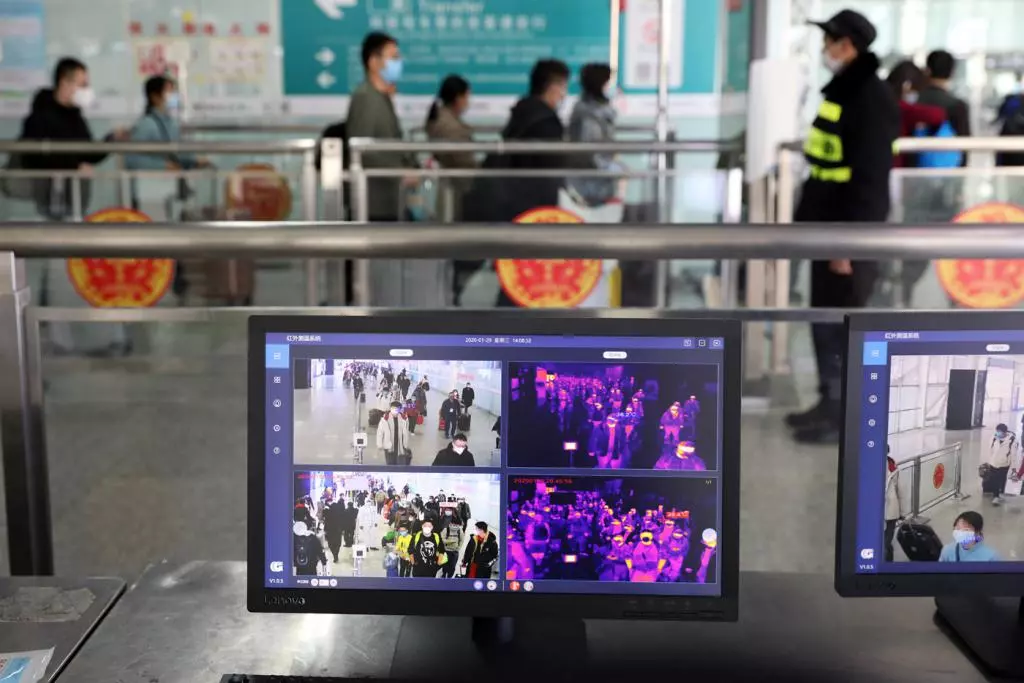 出站旅客的體溫實時顯示在電腦屏幕上,一旦發(fā)現(xiàn)體溫異常人員,系統(tǒng)馬上自動發(fā)出警告。