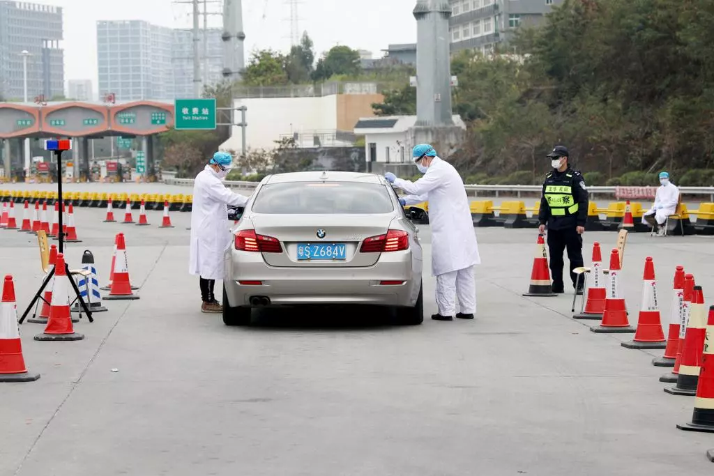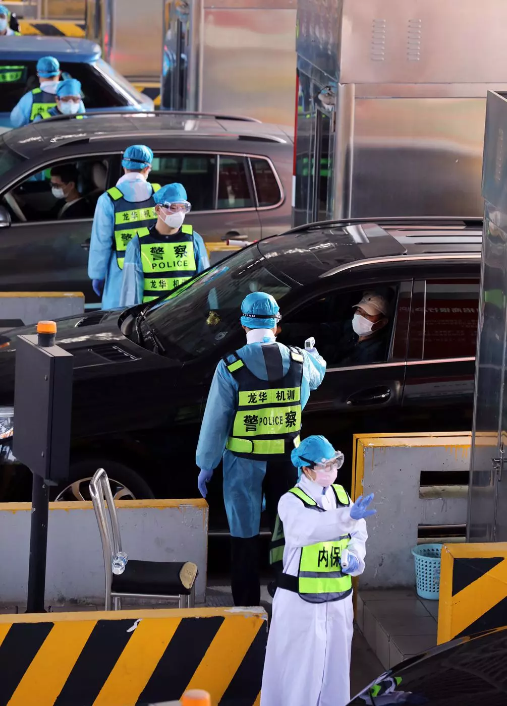 醫(yī)務(wù)人員對入深車輛乘員進行二次測溫。