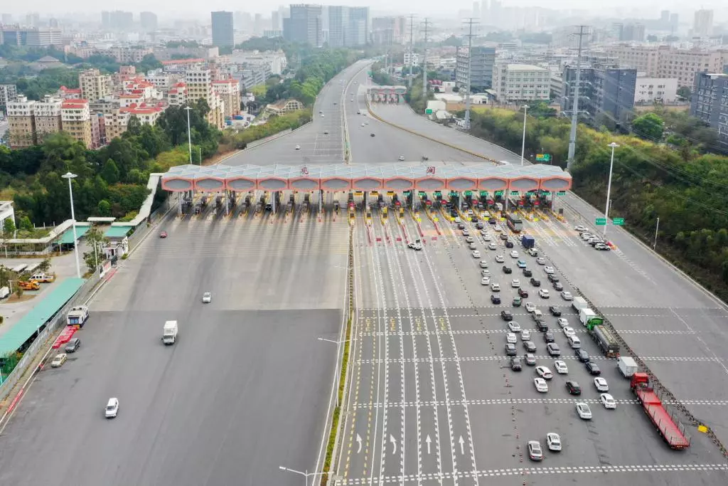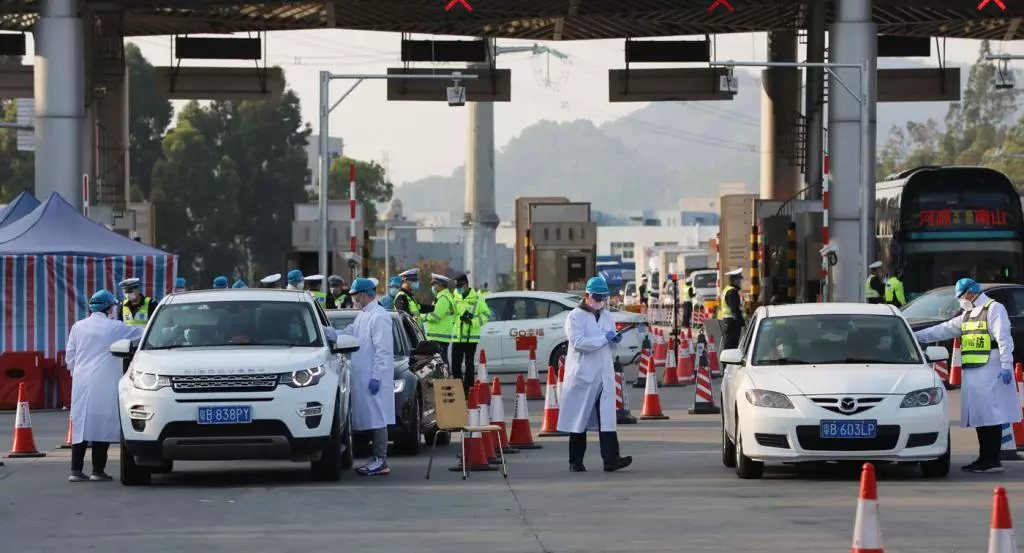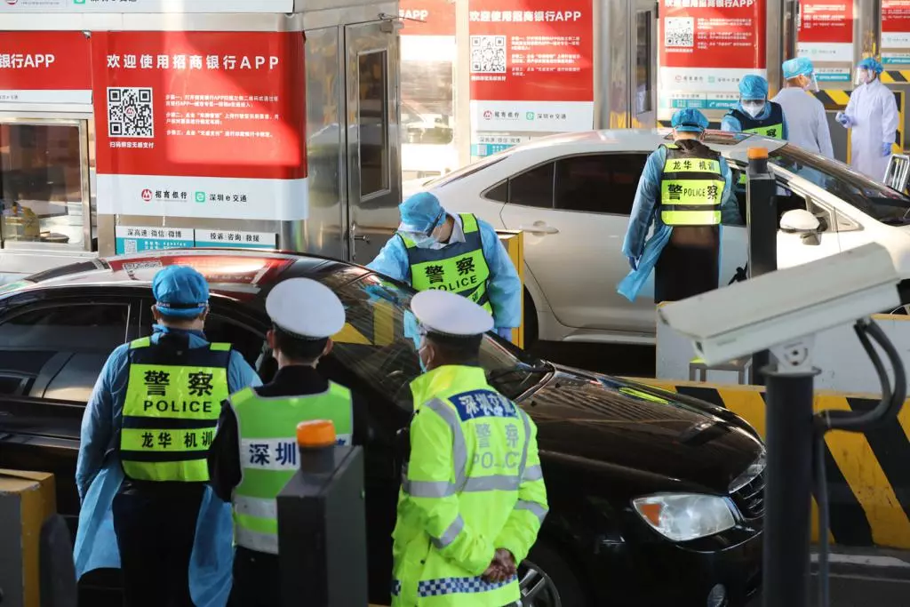 2月2日中午,深晚記者來到梅觀高速觀瀾收費站,發(fā)現(xiàn)這里開通了4條車道供車輛通行,現(xiàn)場有超過20名民警、醫(yī)務(wù)人員檢測入深車輛司乘人員的體溫。