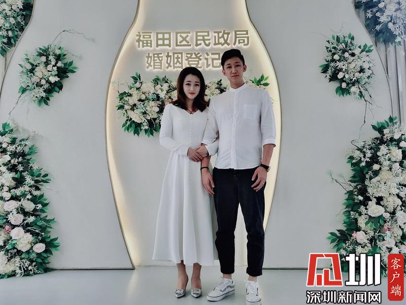 孟祥鳳和曹安在福田區(qū)民政局登記領(lǐng)結(jié)婚證。