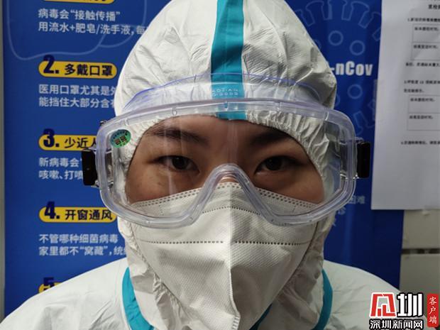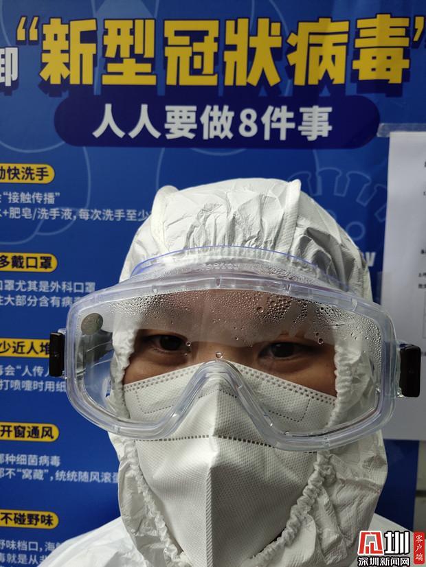 剛穿上防護(hù)服,護(hù)目鏡是這樣。