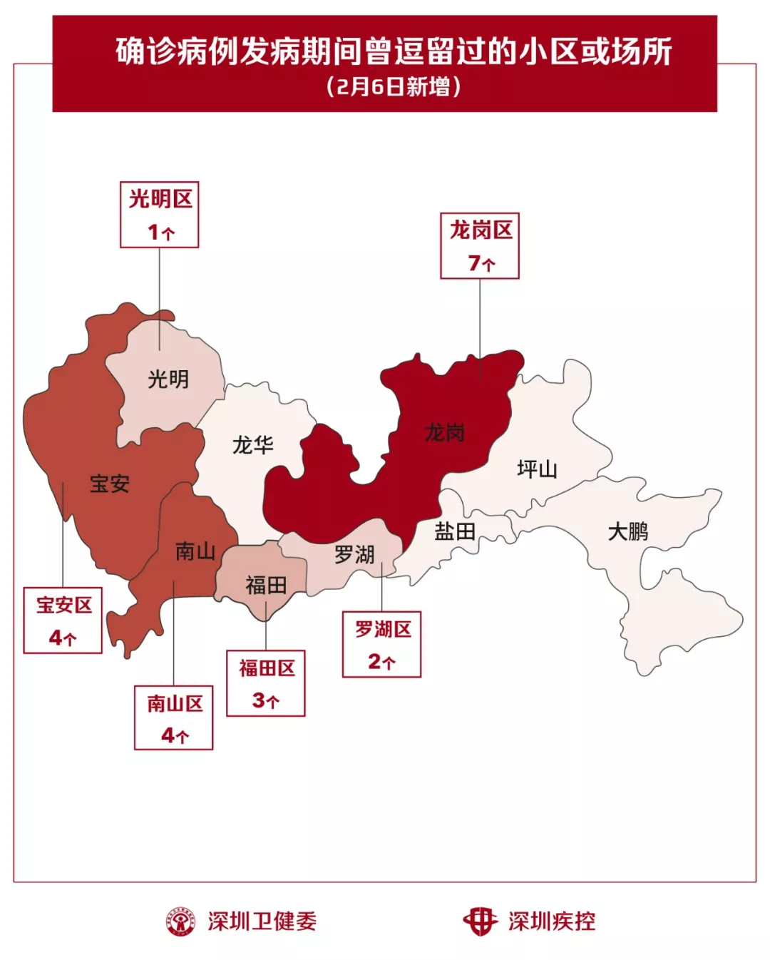 2月6日,疾控專業(yè)人員通過最新的流行病學(xué)調(diào)查確認(rèn),深圳新增21個(gè)小區(qū)(場所),有新確診的病人在出現(xiàn)病征期間曾經(jīng)逗留。