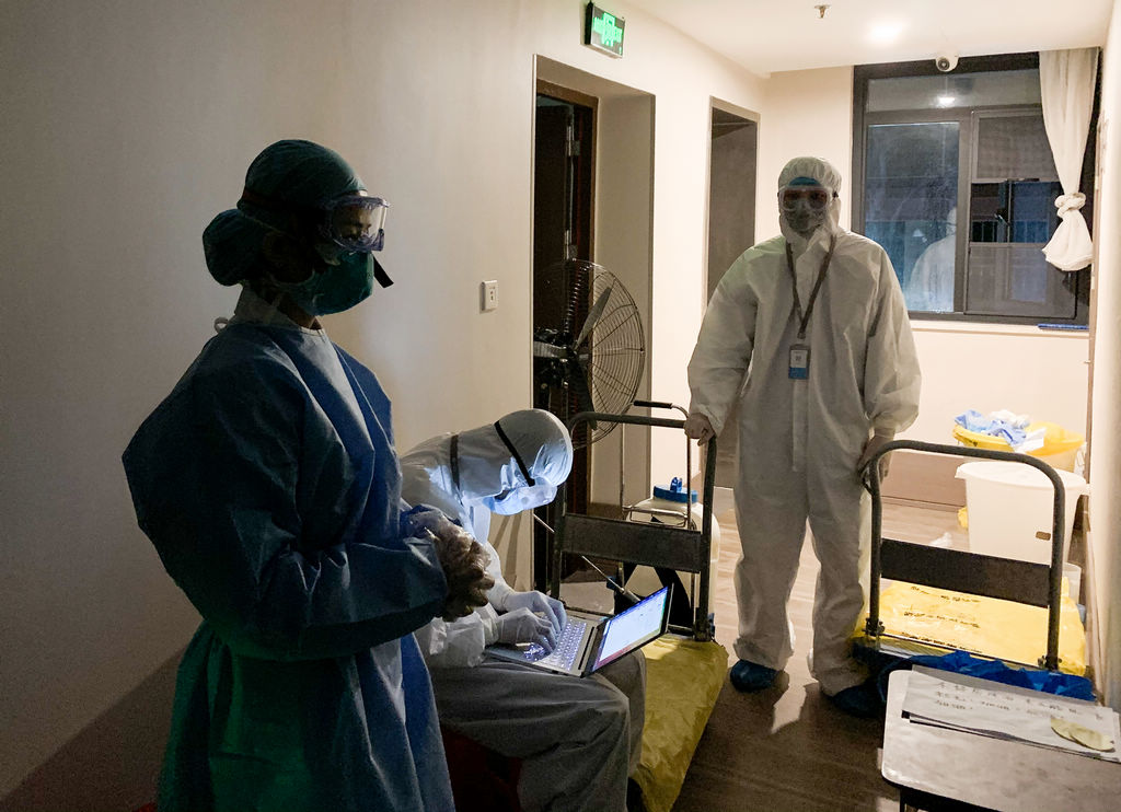 “雖然停電了,但是工作不能停,我們不僅要準(zhǔn)備好明天的防護(hù)用品,更要時(shí)刻關(guān)注‘家人們’的情緒,盡我們最大的努力去幫助他們,我們隔離病毒,但不隔離愛?!斌A站的醫(yī)護(hù)人員說道。