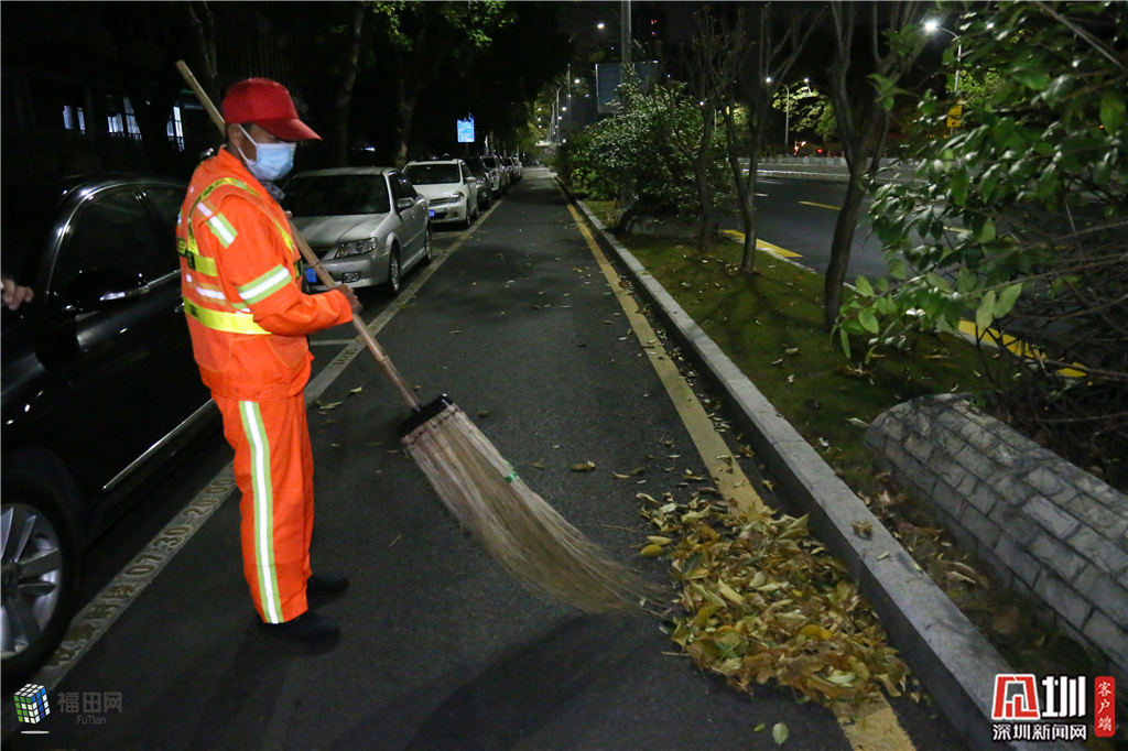 來自湖南的田朝勝,在清潔工人這個(gè)崗位已經(jīng)工作10年,每天清晨他都在清掃著這個(gè)片區(qū)路面,地面上泛黃的葉子在黑夜里被他掃的沙沙作響。他說,疫情期間,很多環(huán)衛(wèi)人員回老家后再想回深圳就沒那么容易了,有很多老鄉(xiāng)被隔離了回不來。“希望咱們的日子趕快好起來吧,2020年一天比一天過得好?!碧锍瘎俑锌?。