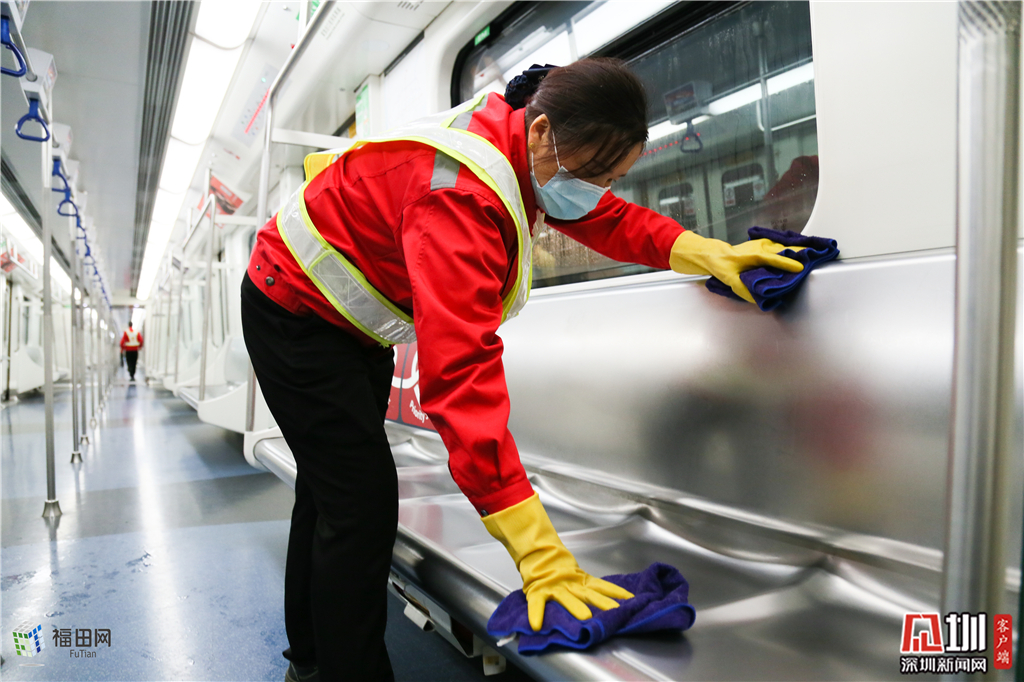 張軍香用剛剛兌好84消毒液,細(xì)心地為奔跑一天的列車消殺除菌。這段時(shí)間的23點(diǎn)-次日的7點(diǎn),早上從這個(gè)區(qū)域車間駛出的第一批次列車就是保潔員張軍香所在團(tuán)隊(duì)消殺清潔過的。16瓶高濃度的84消毒液,勾兌出近600斤消毒水,6個(gè)人分三組,140米的車廂,這段時(shí)間的每個(gè)夜晚,在這座城市最重要的交通工具上默默耕耘。