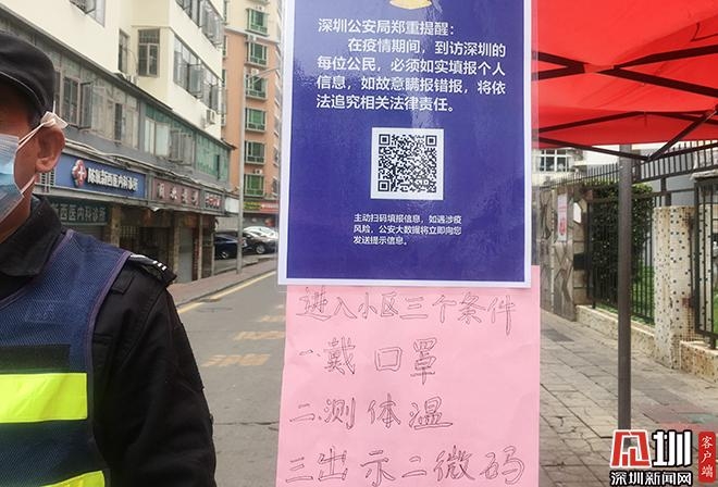 對(duì)于還未登記的市民或者剛返深的市民,該執(zhí)勤人員表示,他們可現(xiàn)場(chǎng)掃描二維碼,填報(bào)真實(shí)信息即可立即生成驗(yàn)證二維碼?!胺彩沁M(jìn)出人員,必須同時(shí)滿足三個(gè)條件:戴口罩、測(cè)體溫、出示二維碼,我們才放進(jìn)來(lái)?!痹搱?zhí)勤人員一邊檢查進(jìn)出人員信息,一邊向現(xiàn)場(chǎng)居民宣傳。(見圳客戶端、深圳新聞網(wǎng)記者 潘峰)