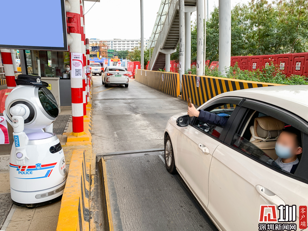 5G機(jī)器人義警“黃田田”提醒回深車輛掃碼登記。