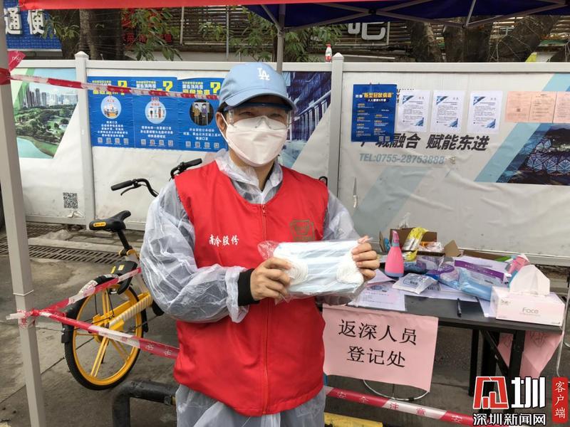 來(lái)自龍崗區(qū)南嶺村的鄧育芳,是不少租戶的房東,也是值守在南嶺南路黨員先鋒崗的一名村民志愿者。連續(xù)十多天,她每天在村口站立整整7個(gè)小時(shí),不停為出入居民測(cè)量體溫、詢問(wèn)來(lái)源地、查驗(yàn)申報(bào)二維碼、引導(dǎo)注冊(cè)。