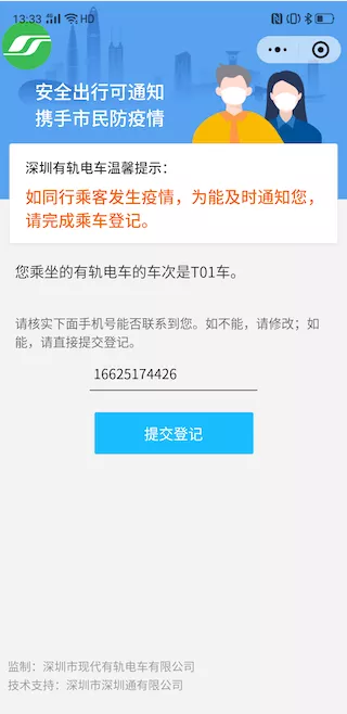 2月16日起,深圳有軌電車上線“電車同乘信息系統(tǒng)” ,乘客搭乘記錄可追溯可查詢