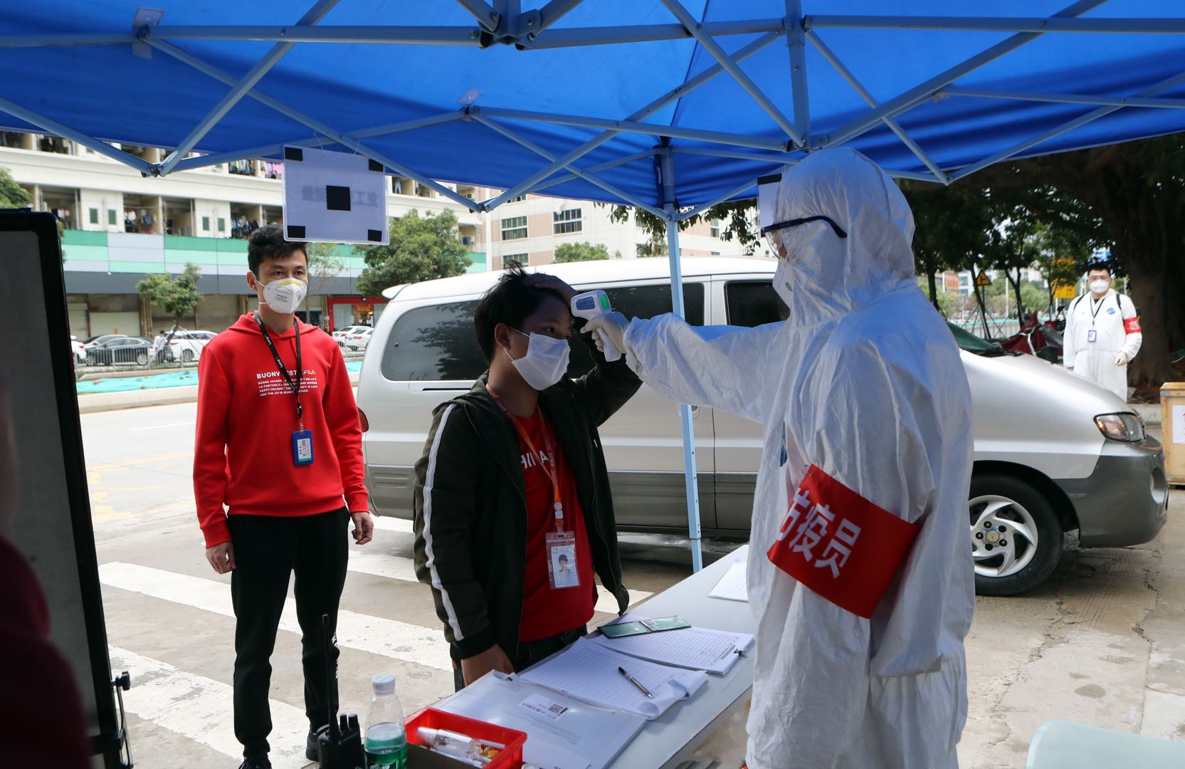 記者來到位于寶安區(qū)福海街道的萊爾德電子材料(深圳)有限公司了解復(fù)工防疫情況,這是一家有著2300名員工的企業(yè),平時(shí)吃住在園區(qū)宿舍有1000多人。