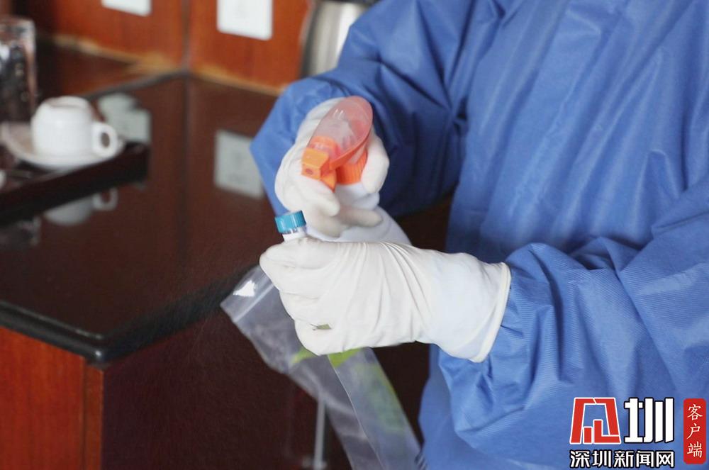 “您好!我們是醫(yī)院來做核酸檢測采樣的?!?月15日上午,新桃園酒店一些樓層的走廊里,響起了一陣陣敲門聲和一句句簡單的自我介紹,這是協(xié)和深圳醫(yī)院的核酸采樣流調(diào)小分隊(duì)來了。