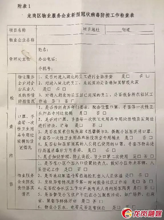 龍崗區(qū)物業(yè)服務(wù)企業(yè)新型冠狀病毒防控工作檢查表。