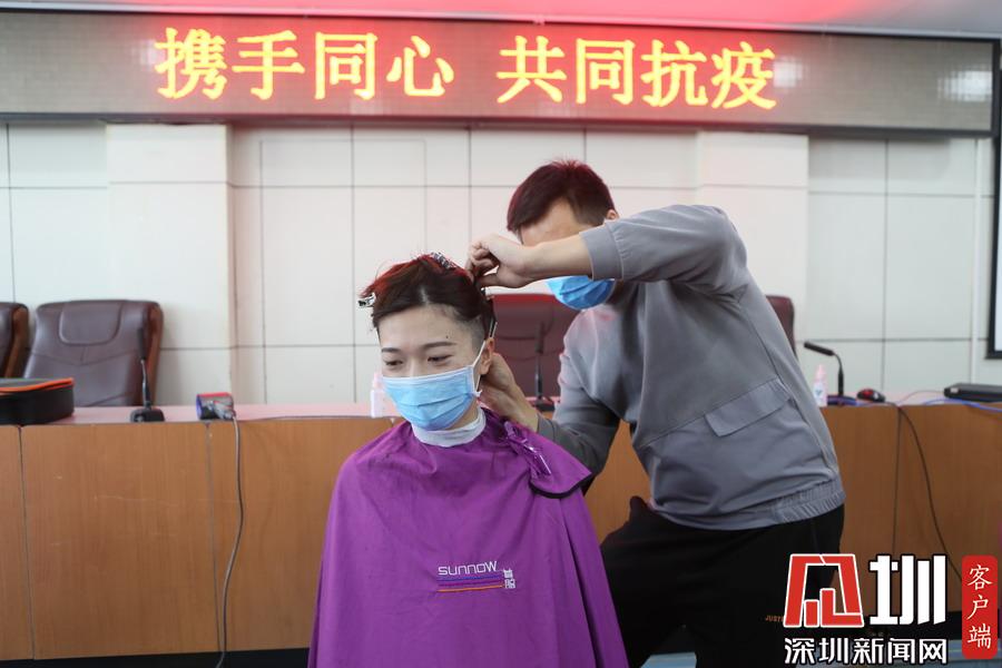 “在投入一線工作前,我們的首要任務就是剪短頭發(fā),為抗擊疫情做最充分的準備?!鄙钲谶厵z總站醫(yī)院護師王雅婷介紹,面對復雜嚴峻的新冠肺炎疫情,醫(yī)護人員進入隔離病區(qū)需要戴一次性工作帽將頭發(fā)完全包裹,前遮眉頭,后不能露頭發(fā),如果頭發(fā)厚重就容易滑落造成污染。剪短發(fā)既能減少病菌吸附,利于個人防護,又能節(jié)省打理時間,方便防護服的穿脫。
