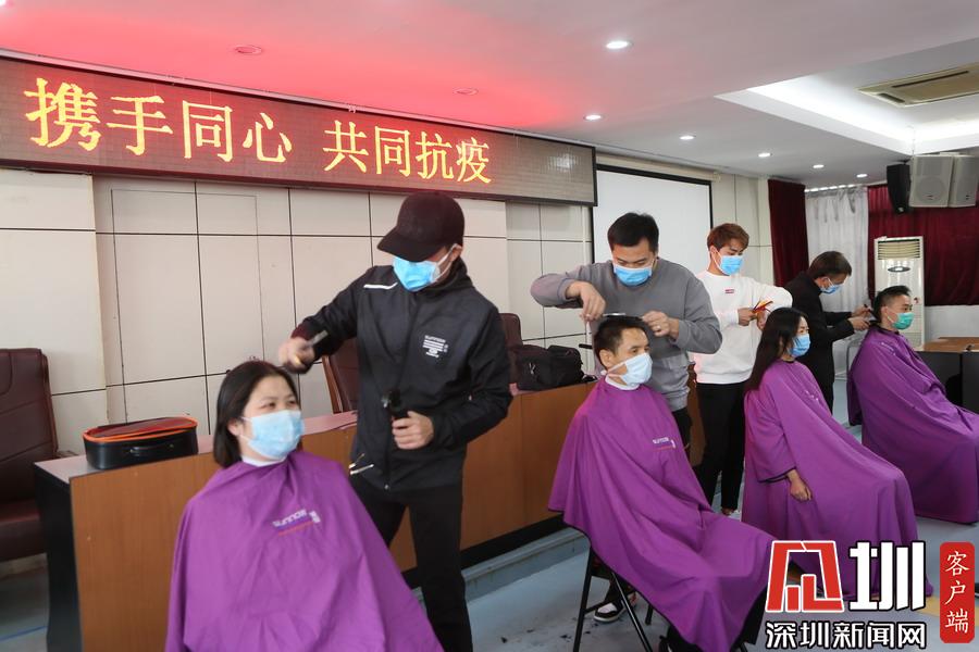 “頭發(fā)剪了可以再留,抗擊疫情卻不能有絲毫耽擱”。支援隊員何方說。2月17日下午,受邀來義務剪發(fā)的深圳首腦發(fā)藝店的5名發(fā)型師在該院五樓門診部會議室臨時搭起一個簡陋的“理發(fā)店”,沒有全套的“洗剪吹”,大家既是“發(fā)型師”,也是“顧客”,只用了簡單的修剪工具。