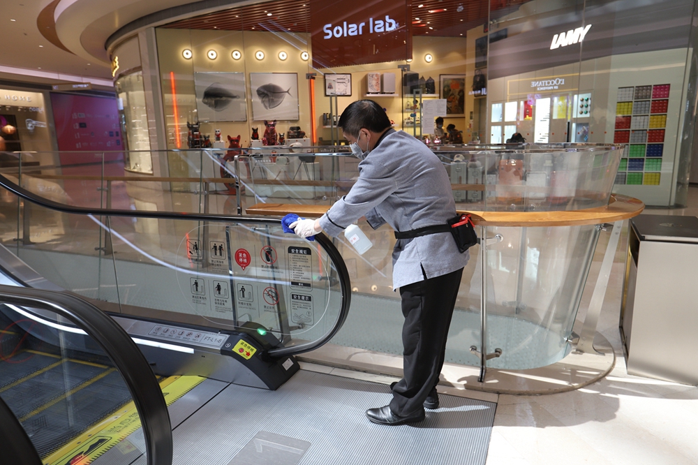 “這些可能與人產(chǎn)生近距離接觸的地方是消毒清潔的重點(diǎn)?!币挤匠俏飿I(yè)負(fù)責(zé)人表示,疫情以來,商場(chǎng)及時(shí)采購口罩、手套、防護(hù)服、消毒水等防疫物資,并在原有基礎(chǔ)上進(jìn)一步加強(qiáng)購物空間的清潔衛(wèi)生和消毒,尤其是扶梯、電梯、衛(wèi)生間等重點(diǎn)區(qū)位的消殺。此外,商場(chǎng)強(qiáng)化了新風(fēng)系統(tǒng)的工作,保證空氣流通,多管齊下,確保衛(wèi)生工作嚴(yán)標(biāo)準(zhǔn)、多頻次、無死角。