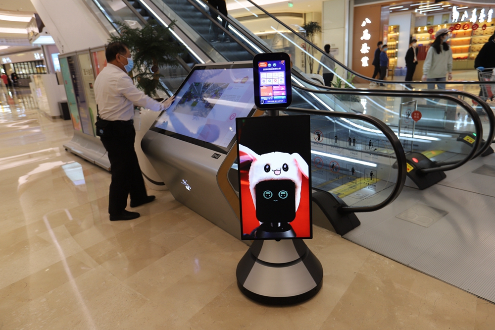 走在商場(chǎng)中,隨時(shí)可以看到保潔人員在消毒清潔。在商場(chǎng)一樓中庭導(dǎo)購屏和導(dǎo)購機(jī)器人處,保潔人員用消毒水反復(fù)擦拭屏幕。據(jù)悉,商場(chǎng)每小時(shí)巡回對(duì)扶梯、電梯、衛(wèi)生間、消防通道、導(dǎo)視屏、扶手欄桿、休閑椅、門把手、垃圾房、垃圾桶等地進(jìn)行消毒。