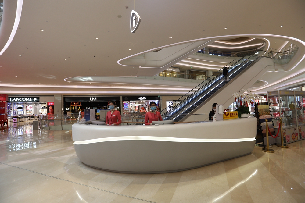 在商場(chǎng)一樓的客戶服務(wù)中心,工作人員告訴記者,壹方城給前來購物的市民提供必要的消毒清潔服務(wù),在主入口增加免洗消毒液供顧客使用,并通過場(chǎng)內(nèi)廣播和LED屏播報(bào)防疫知識(shí)和相關(guān)宣傳信息,加強(qiáng)顧客對(duì)疫情的重視和了解,還向入場(chǎng)顧客免費(fèi)派送涼茶用于防疫。此外,市民還可憑積分在服務(wù)臺(tái)免費(fèi)兌換口罩,商場(chǎng)還可免費(fèi)幫會(huì)員代購,并送貨上門。