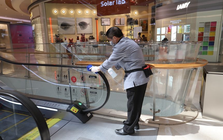 位于龍崗寶能城市廣場內(nèi)的沃爾瑪超市,人們前來采購生活用品。進(jìn)超市前,人人均需要經(jīng)過體溫檢測。