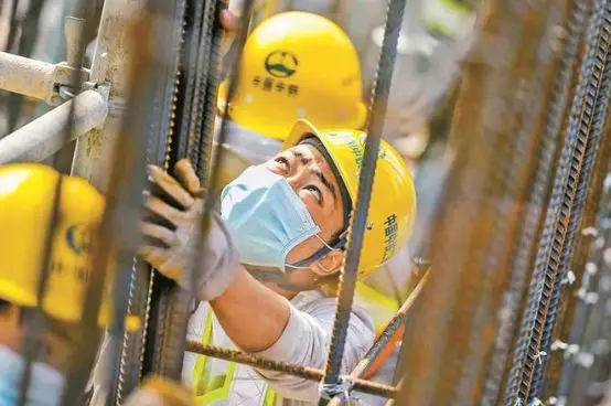 工人戴上口罩施工。圖自:深圳特區(qū)報