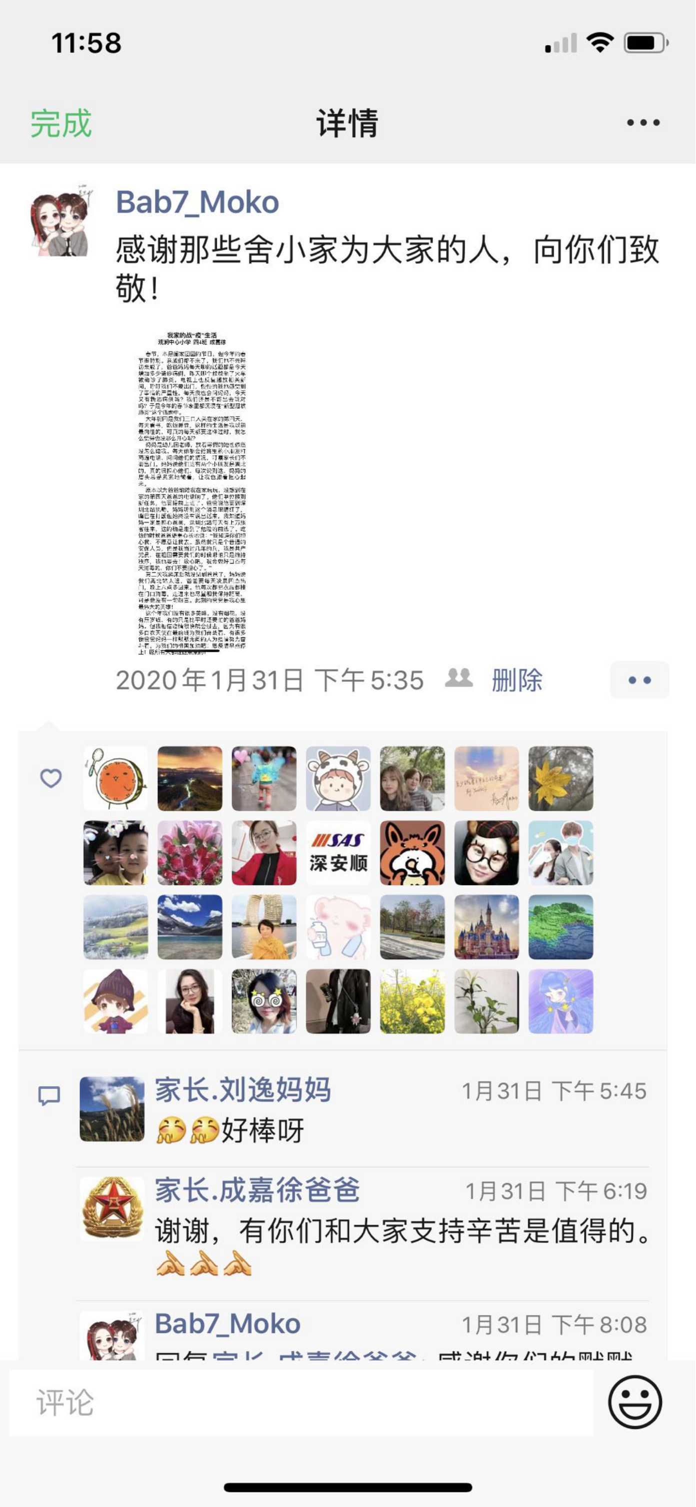 莫老師在班級(jí)群和朋友圈里分享學(xué)生發(fā)表的作文。
