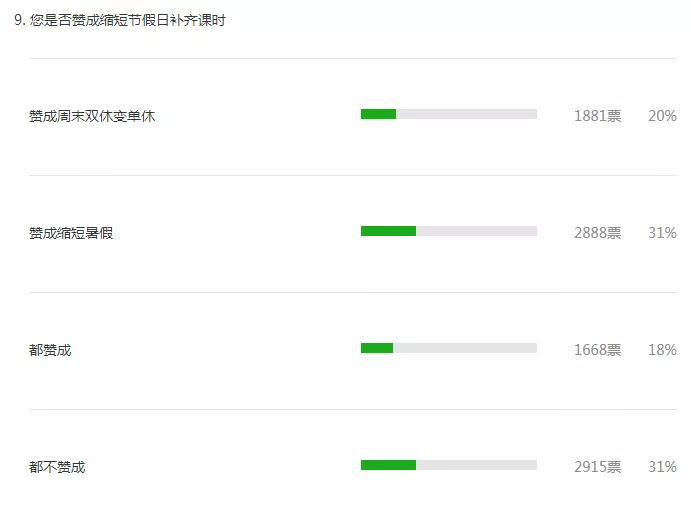 69%的參與者支持縮短周末或暑假