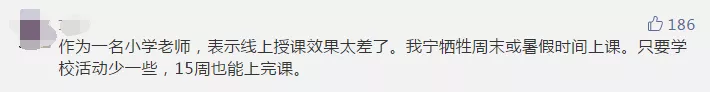 一位小學(xué)老師也直言:線上授課效果太差了,寧愿犧牲周末或暑假時(shí)間上課。