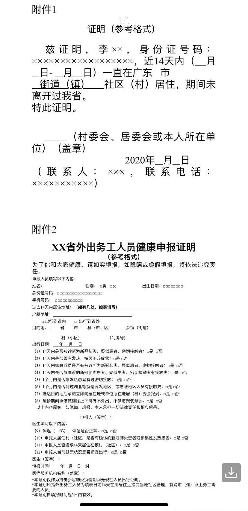二、對持湖北省等疫情高發(fā)地區(qū)身份證來粵人員,如能提供中國移動、中國電信和中國聯(lián)通發(fā)布的個(gè)人軌跡證明信息,證明本人14天內(nèi)未離開過廣東、未到過疫情高發(fā)地的,可到社區(qū)(居委或村委)或本人所在單位申領(lǐng)證明(見附件1)。