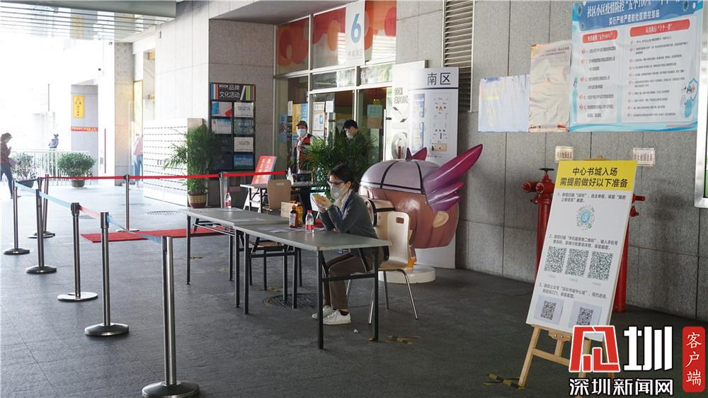 深圳中心書城已開放,進門要進行嚴格的登記和檢查。