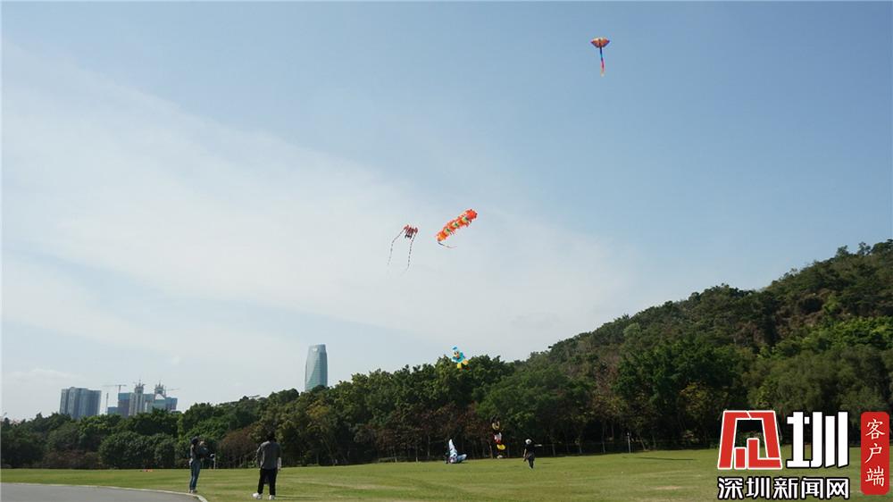 蓮花山公園風(fēng)箏廣場上,不少市民在此放飛風(fēng)箏。